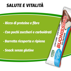 Buonissimo di WHYnature è una deliziosa barretta ricca di proteine, ma a basso contenuto di carboidrati, con un ripieno morbido e gustoso e una deliziosa copertura di cioccolato.