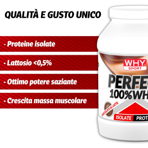 WHYsport Perfect Whey contiene 900 gr (30 porzioni) di 100% proteine whey isolate altamente digeribili e ad altissima solubilità.